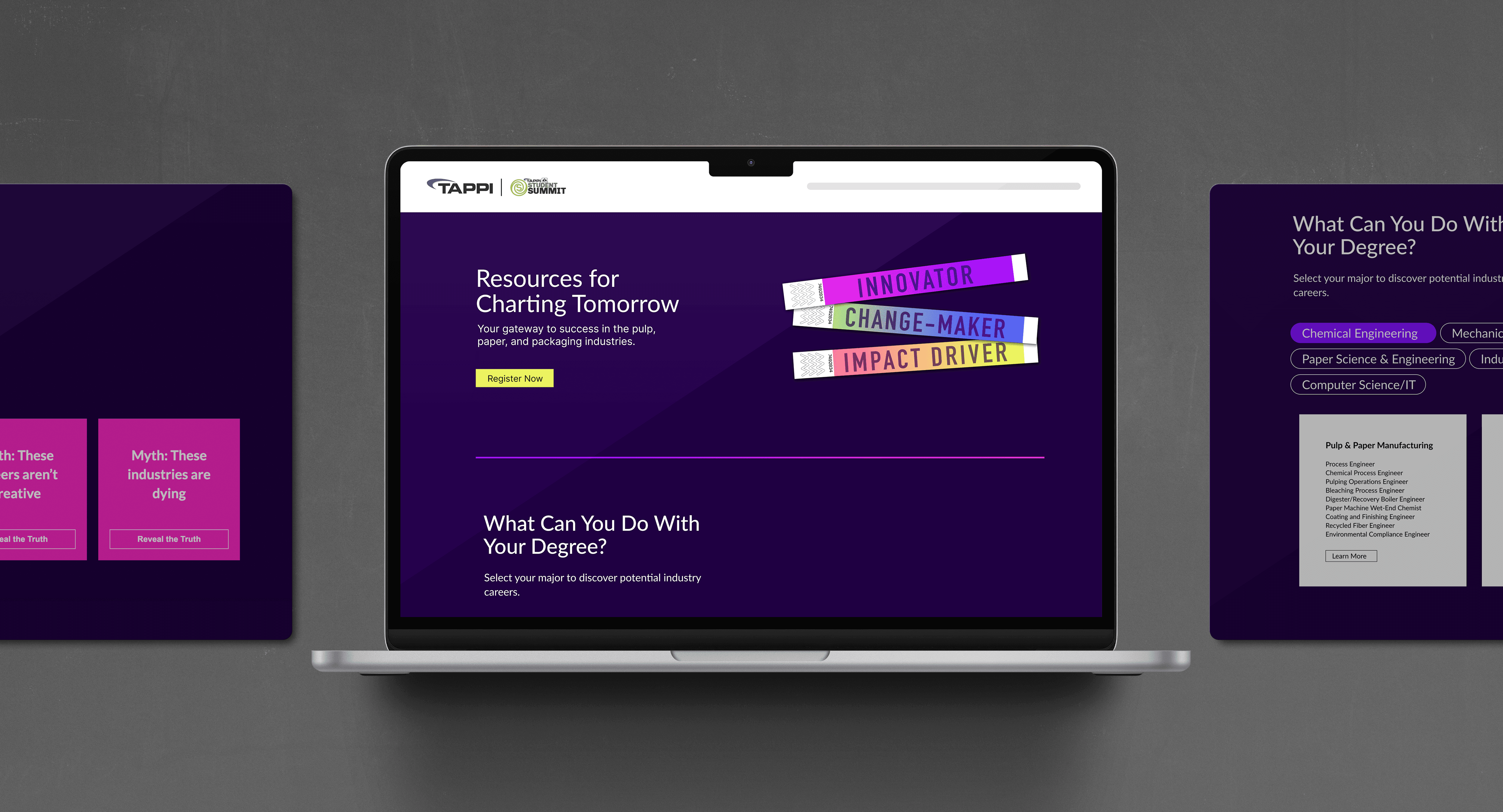 Designed and built an interactive, student-first content hub that transforms a transactional event site into a guided career exploration experience.